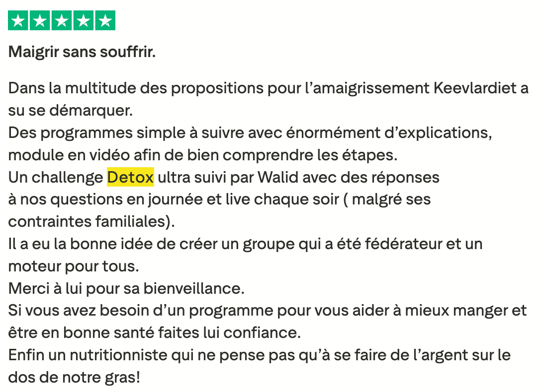 Personnellement j’ai perdu 1kg en 1 semaine alors que je n’ai pas de poids à perdre.